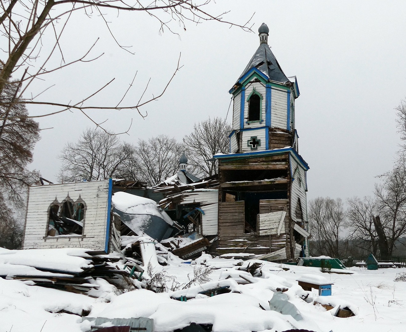 -The local shrine – the Church of the Intercession of the Holy Mother of God in the village of Vyazzka – also came under fire. The church was built in 1862.