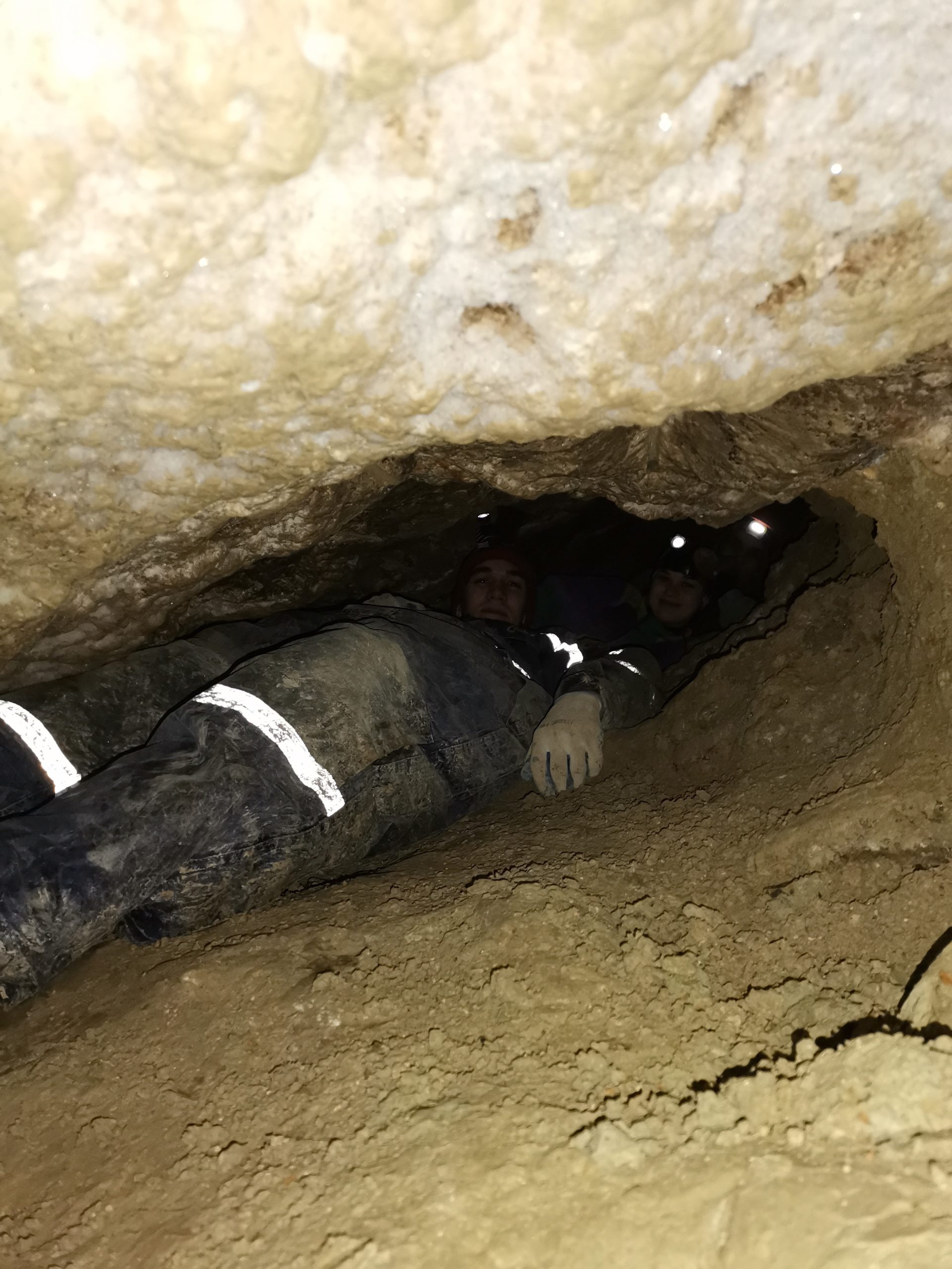 Нашу групу волонтерів розділили на дві підгрупи. Одна з них займалася розширенням ходів у вже відомій місцевості під назвою «Патагонія». Може здатися, що це доволі нецікава робота – розгрібати глину. Та де там! Район Патагонії – це вузький і не дуже зручний лаз, долати який доводиться протягом мінімум 20 хвилин на колінах або на животі. І обов`язково з низько опущеною головою, щоб не зачепити дорогоцінні гіпсові кристали, що наросли на стелі. Патагонія веде до нових, нещодавно відкритих районів, де відбувається зараз найцікавіше – відкриття наступних нових районів! Тому розширення проходу вниз, вибираючи величезні масиви глини й каміння, створить більш зручні умови для долання цієї ділянки майбутніми дослідниками.